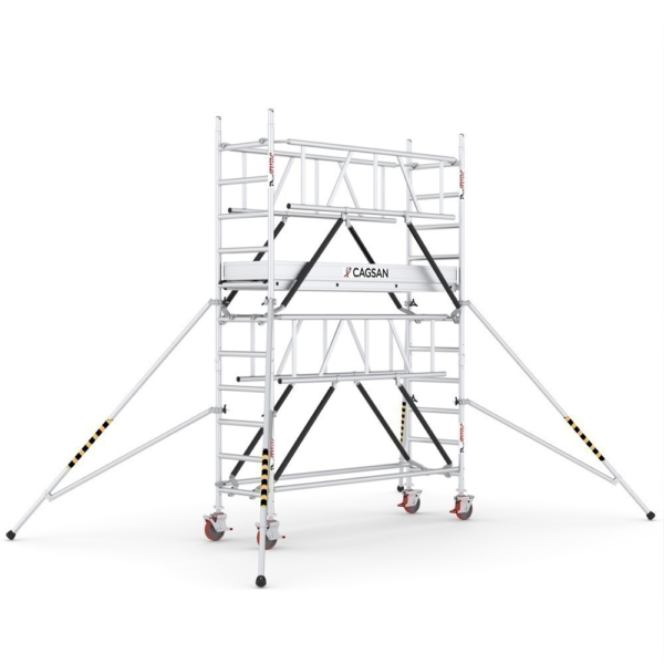Hafif ve kullanışlı: Alüminyum malzemeden imal edilen iskelelerimiz, hafif ve kullanışlıdır, bu da çalışma alanında rahat taşınabilirlik sağlar.