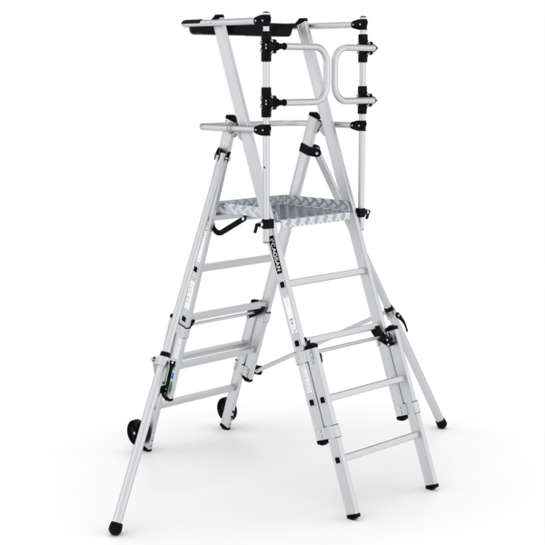 SPRINGO platformları, TÜV-SÜD EN 131-7 Kalite Sertifikasına sahiptir. Uzun süreli işlerinizde çalışma verimliliğinizi arttıran ergonomik ürünlerdir. Sağlam ve uzun ömürlüdür. 110 cm yüksek korkululukları ve emniyetli, sadece içeri açılan yaylı kapısı da güvenli çalışmanın konforunu sağlayan önemli unsurlardır.